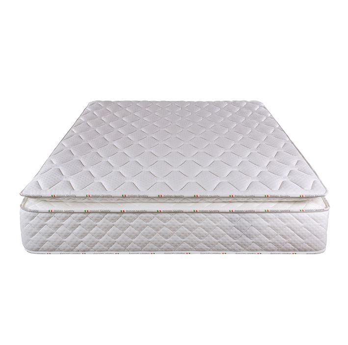 Miezul saltelei este realizat din arcuri Bonell tratate termic, acoperite cu poliuretan de densitate 23 kg/m³, ceea ce asigură durabilitate și susținere ortopedică optimă. În plus, pe partea de iarnă, vei găsi un strat de lână naturală de 600 g/m², care menține o temperatură plăcută pe timpul nopților reci.